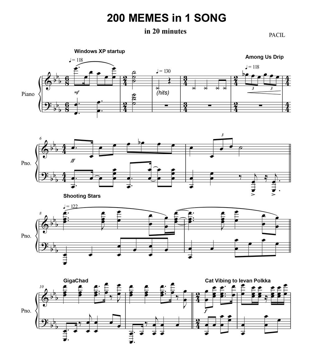 All 200 memes were written in its original difficulty. It is recommended to buy only from advanced pianists.